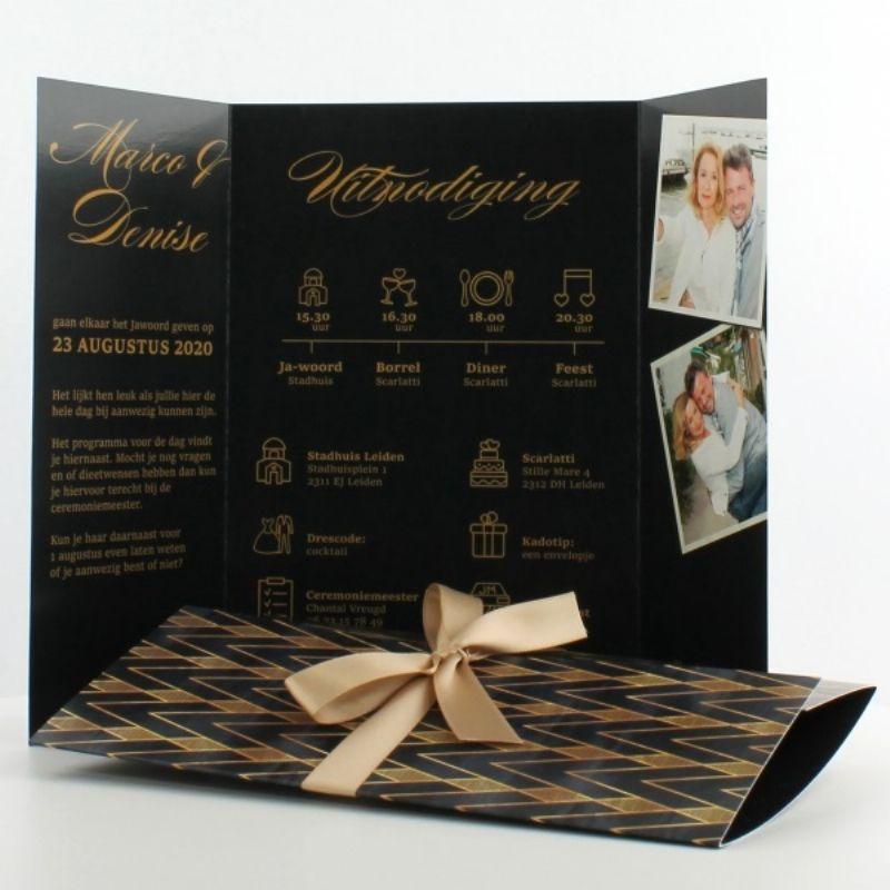 Blader, scroll of swipe door de ruime collectie huwelijkskaarten. Van Hip tot klassiek en alles daar tussenin. En vrijwel dagelijks komen er nieuwe designs bij. Kies een bijzondere kaart, bewerk de tekst, voeg eventueel eigen foto's toe en je kaart is klaar!